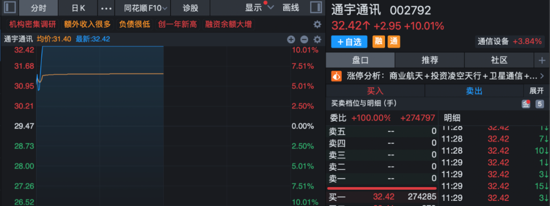通信股早間集體走強,通信設備方向領(lǐng)漲,板塊指數放量飆升逾6%,創(chuàng )歷史新高,今年以來(lái)累計大漲逾116%。通宇通訊(002792)開(kāi)盤(pán)僅約5分鐘直線(xiàn)漲停,這已是近8個(gè)交易日第5度封板;特發(fā)信息(000070)也放量直線(xiàn)漲停,天孚通信(300394)、光庫科技(300620)、德科立等漲;驖q超10%。