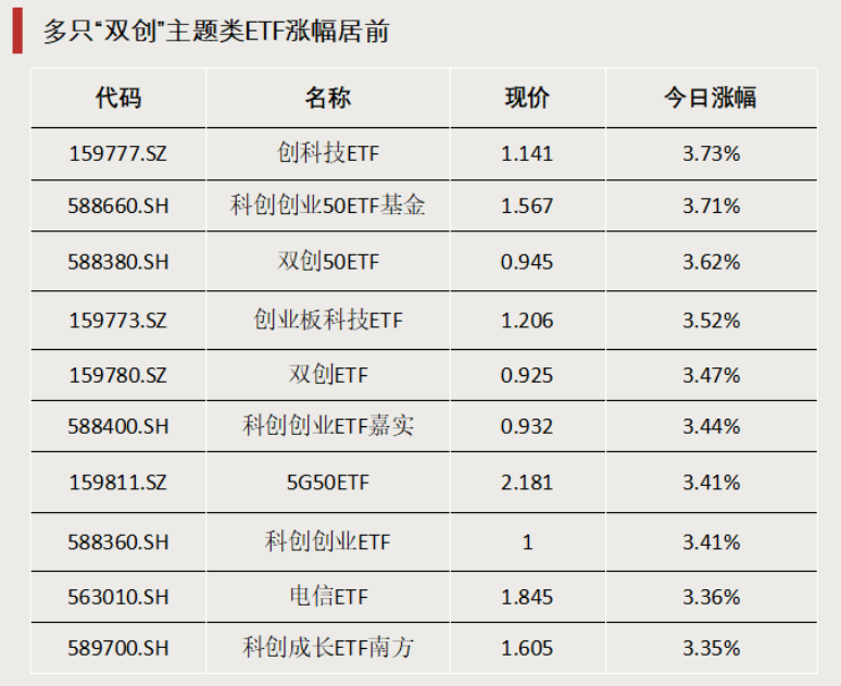 多只“雙創(chuàng )”主題類(lèi)ETF漲幅居前