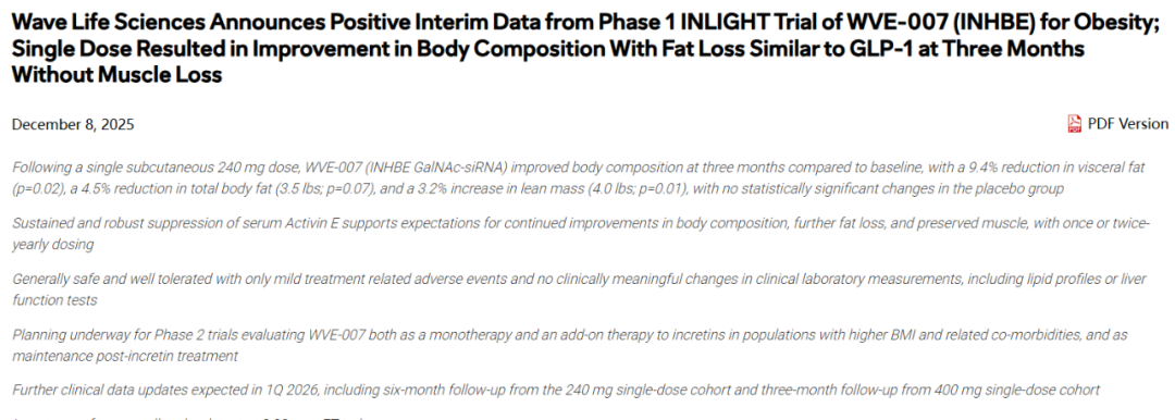 Wave Life Sciences߀Q(chng)ڔM(jn)һWVE-007wϰȫHFpίP(gun)¼AӋ2026һȌl(f)M(jn)һRа240ˆ΄M6(g)SL(fng)