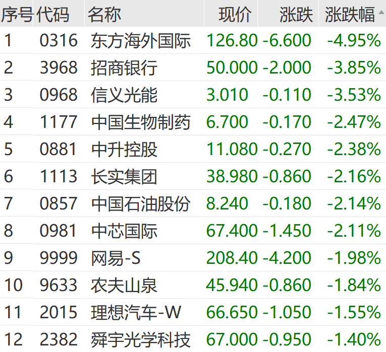 港股市場(chǎng)上午同步震蕩,截至午間收盤(pán),三大指數集體飄綠;東方海外國際、招商銀行、信義光能等領(lǐng)跌恒指成份股。