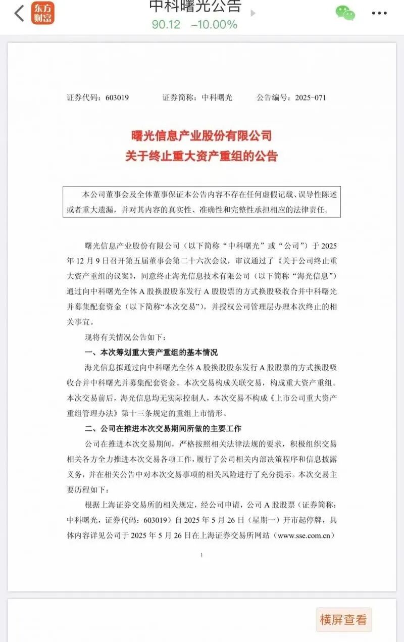 A股千億級并購計劃終止!海光信息、中科曙光紛紛回應:股價(jià)變化較大等因素導致重組失敗