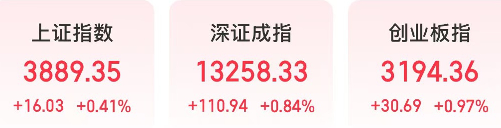 今天,A股反彈。截至收盤(pán),上證指數上漲0.41%,深證成指上漲0.84%,創(chuàng )業(yè)板指上漲0.97%。