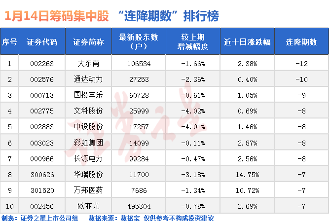 具體來(lái)看,除ST股外,大東南股東戶數(shù)已經(jīng)連降12期;通達(dá)動(dòng)力股東戶數(shù)已經(jīng)連降10期。