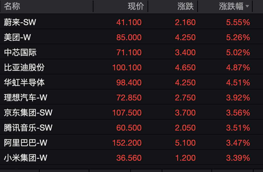 盤面上,科技主題領(lǐng)漲。大型科網(wǎng)股中,美團漲超5%,阿里巴巴、小米、京東漲超3%;半導(dǎo)體芯片股走強,英諾賽科漲超10%,壁仞科技漲超9%,中芯國際漲超5%,華虹半導(dǎo)體漲超4%。