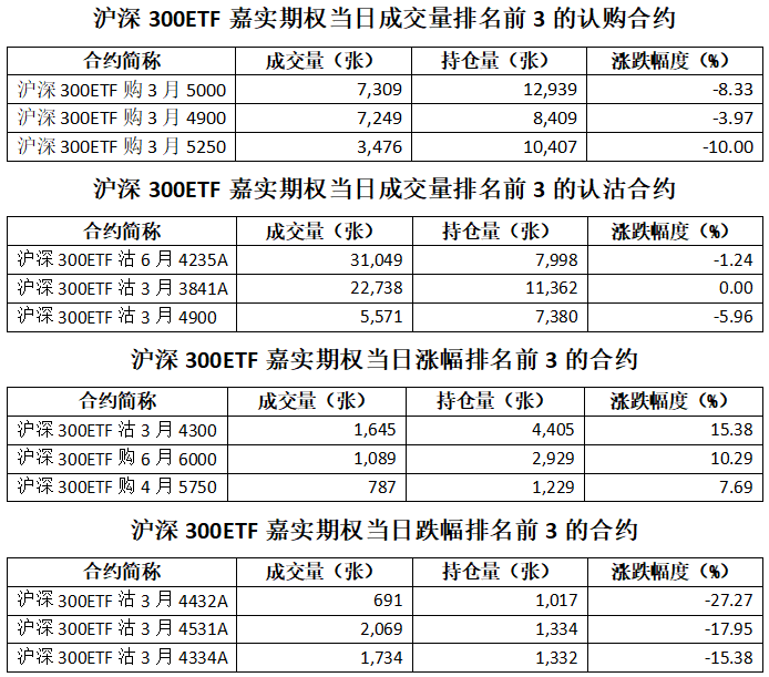 滬深300ETF嘉實(shí)期權(quán)總成交面額68.53億元,減少9.18%,期現(xiàn)成交比為0.01,權(quán)利金成交額0.54億元;期權(quán)總成交量146,369張,減少9.51%,其中認(rèn)購期權(quán)成交量49,681張,認(rèn)沽期權(quán)成交量96,688張,認(rèn)沽認(rèn)購成交比率為1.95(上一交易日認(rèn)沽認(rèn)購成交比率為2.49)。